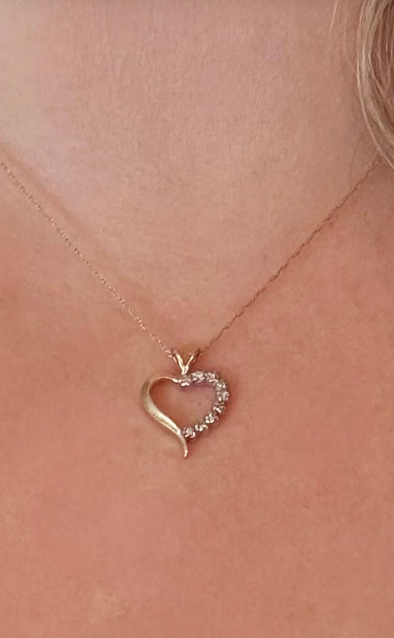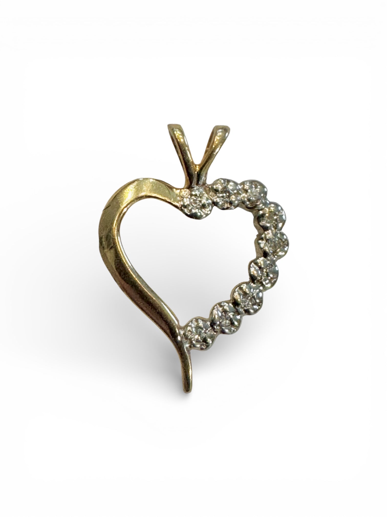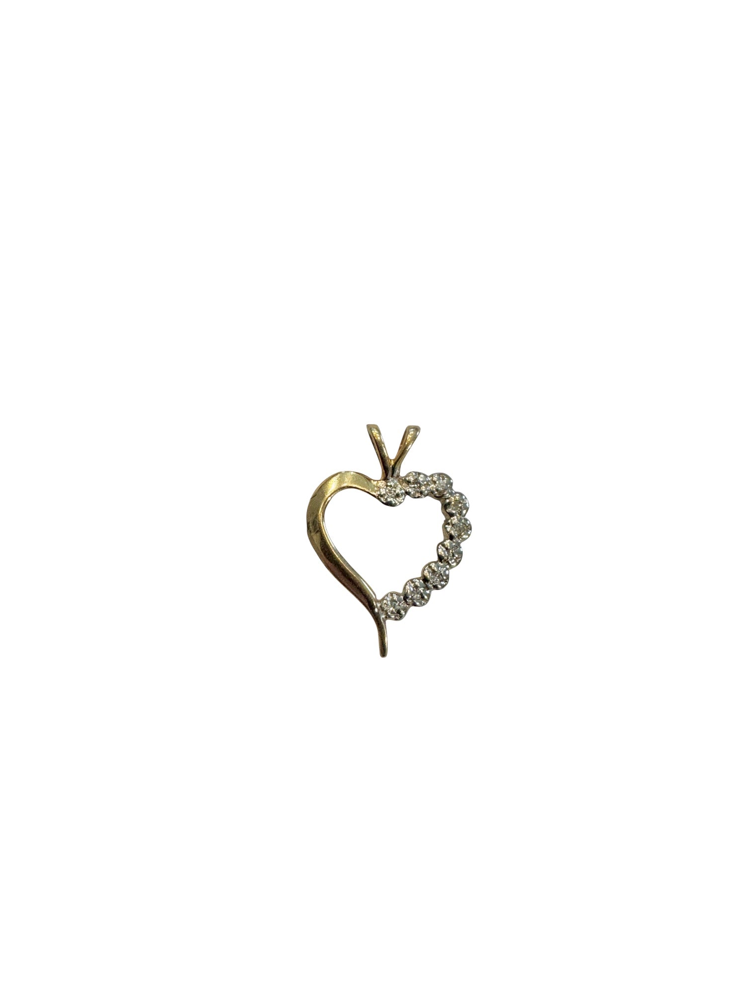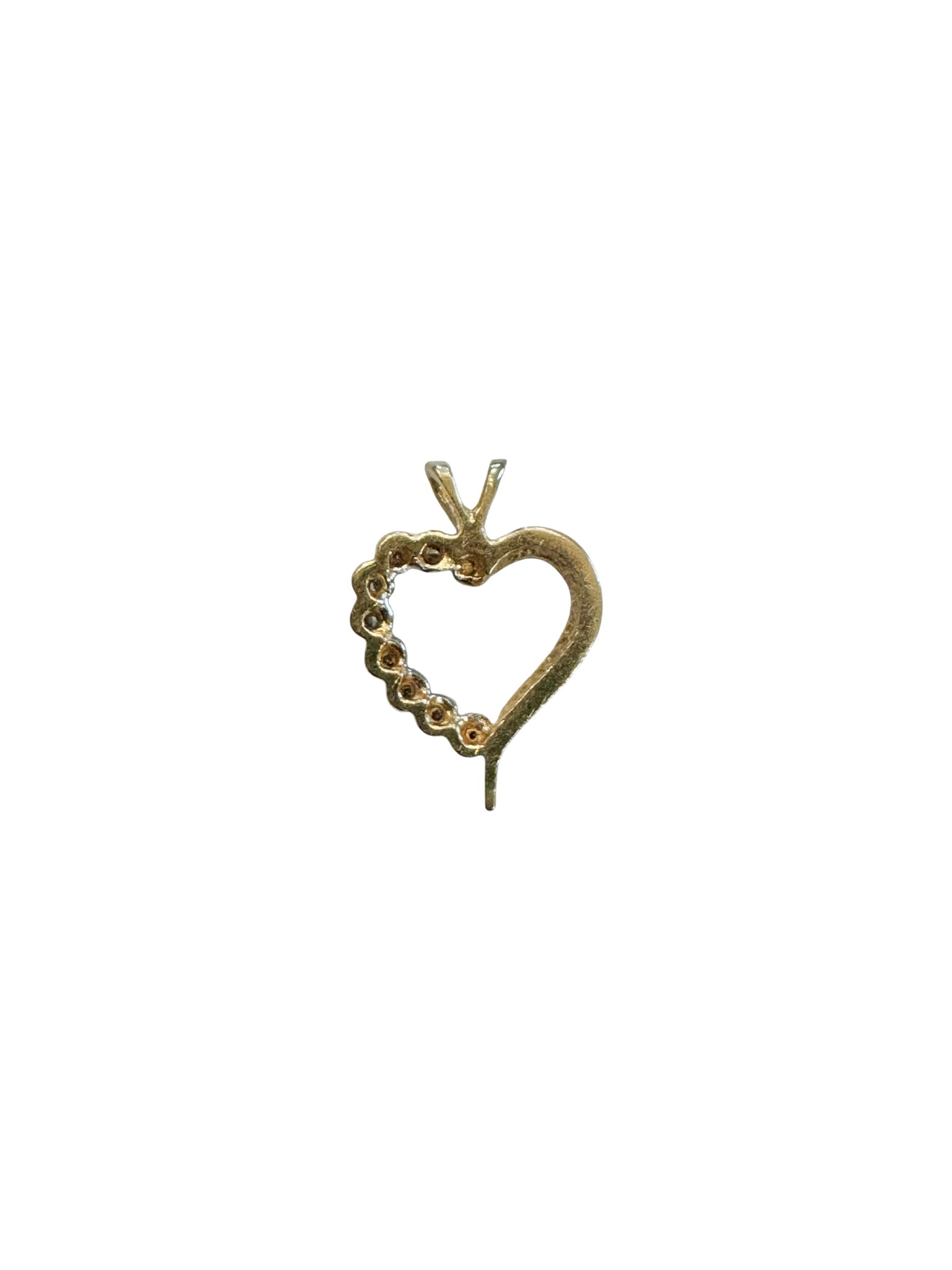 14k Gold Heart with Diamond Accent Charm This vintage 14k yellow gold heart with diamond accent on the right side is simply beautiful - featuring 9 diamond accents set in yellow gold. Chain not included, available for purchase seperately.